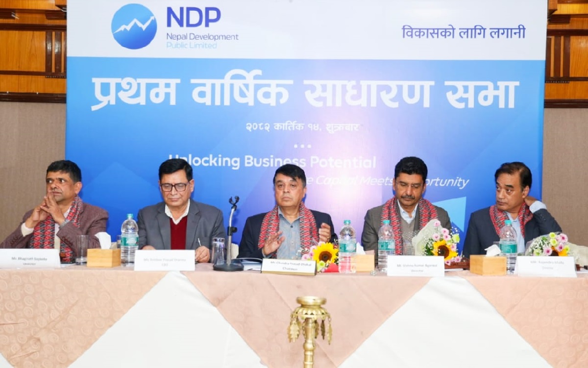 काठमाडौँ । नेपाल डेभलपमेन्ट पब्लिक लिमिटेडको प्रथम वार्षिक साधारणसभा शुक्रवार काठमाडौँमा सम्पन्न भएको छ ।