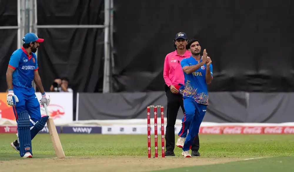 यस खेलमा नेपालका बलर रशिद खानले ह्याट्रिक लिएका थिए । रशिदले पाँचौं ओभरमा ह्याट्रिक लिएका हुन् । रशिदले यस खेलमा कुल ४ विकेट लिएका थिए । त्यस्तै लोकेश बमले एक विकेट लिएका थिए ।