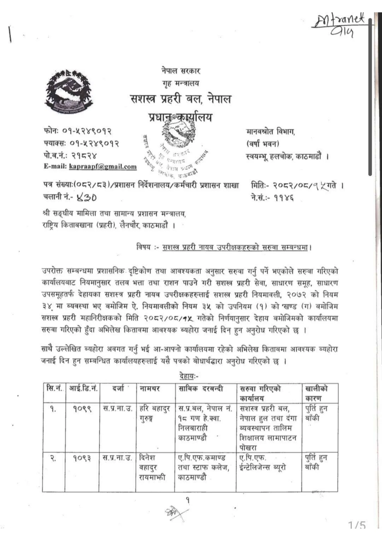 सशस्त्र प्रहरी महानिरीक्षकको सोमबारको निर्णयले उनीहरुको सरुवा गरिएको हो ।