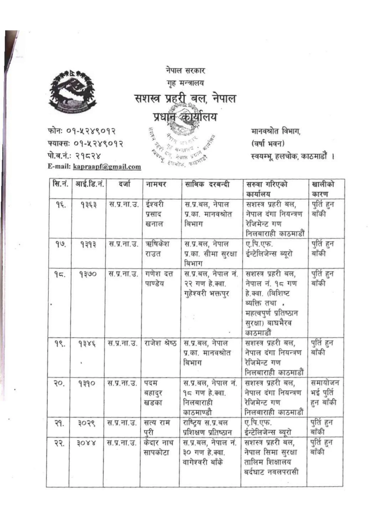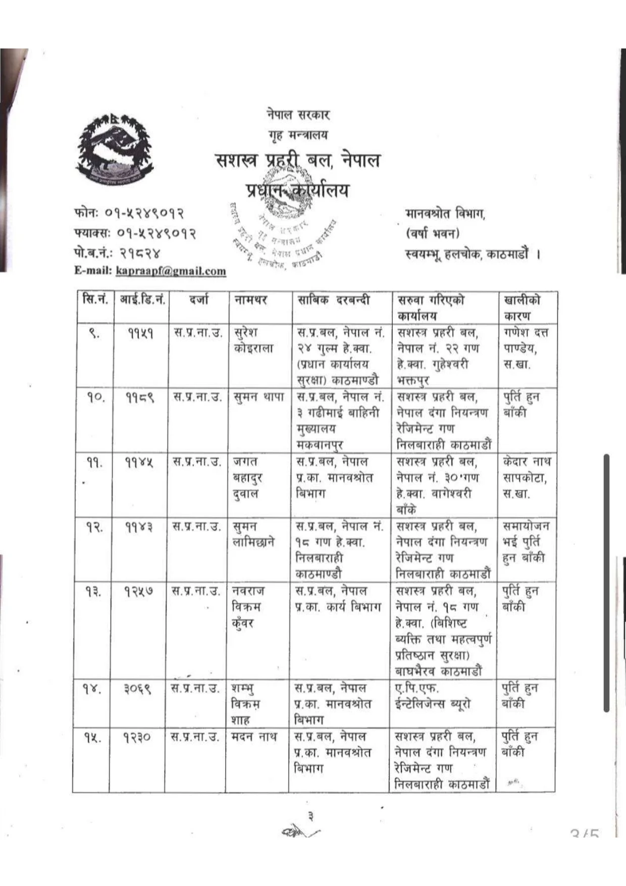 आवश्यकता अनुसार सरुवा गर्नुपर्ने भएकाले सरुवा गरिएको कार्यालयबाट नियमानुसार तलब,भत्ता तथा राशन पाउने गरी उनीहरुलाई सरुवा गरिएको सशस्त्र प्रहरीले जनाएको छ ।