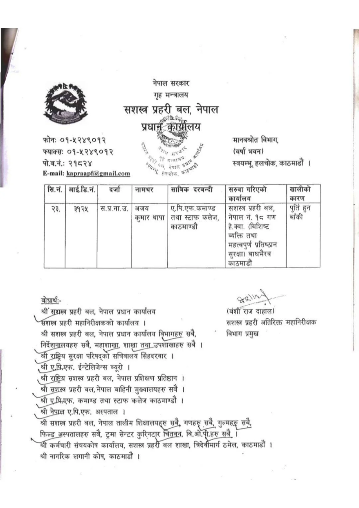 काठमाडौं । सशस्त्र प्रहरी बल नेपालले २३ जना नायब उपरीक्षक (डीएसपी) हरुको सरुवा गरेको छ ।