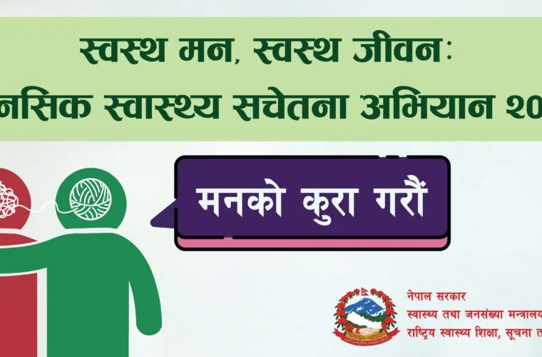 काठमाडौँ । ‘स्वस्थ मन, स्वस्थ जीवनः मानसिक स्वास्थ्य सचेतना अभियान’ शुभारम्भ गरिएको छ । स्वास्थ्य तथा जनसङ्ख्यामन्त्री डा सुधा शर्मा गौतमले ‘मनको कुरा गरौँ’ नाराका साथ अभियानको बुधबार आयोजित कार्यक्रमको शुभारम्भ गरिन् ।