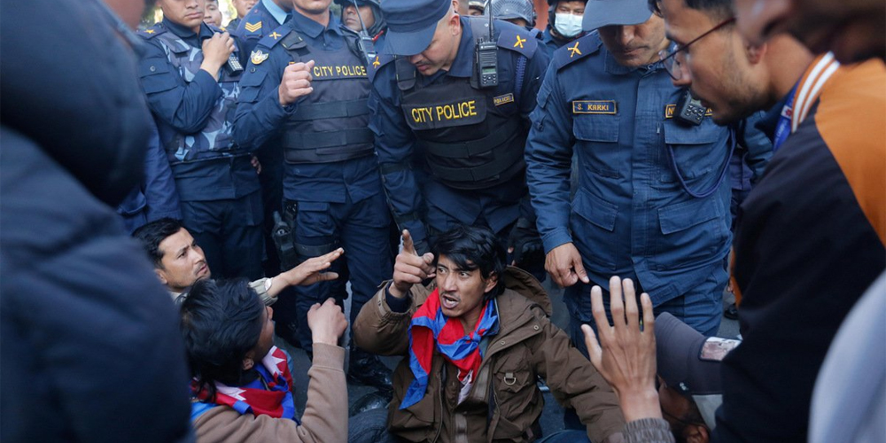 काठमाडौं । विभिन्न माग राखेर अर्थमन्त्री रामेश्वर खनाललाई भेट्न सिंहदरबार जाँदा प्रवेश पास नपाएपछि जेनजी घाइतेहरू सिंहदरबार अगाडि धर्नामा बसेका छन् ।