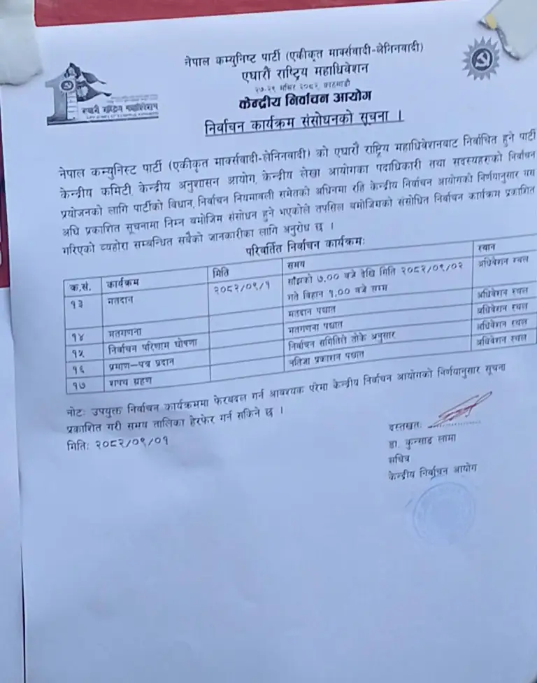 काठमाडौं । नेकपा एमालेको ११ औँ महाधिवेशनको मतदान प्रक्रिया तीन घण्टा पछि सरेको छ । एमाले नेता माधव ढुंगेलका अनुसार प्राविधिक व्यवस्थापनमा समय लाग्ने हुँदा निर्धारित समयभन्दा केही पछि मात्रै मतदान सुरु हुने भएको हो ।