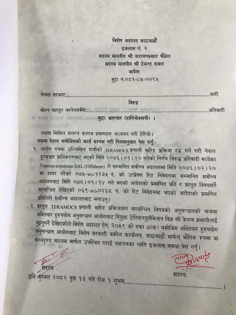 अख्तियार दुरुपयोग अनुसन्धान आयोगले गत वर्ष जेठ १ गते तत्कालीन सञ्चारमन्त्री बस्नेतसहित १६ जनाविरुद्ध विशेष अदालतमा भ्रष्टाचार मुद्दा दायर गरेको थियो।