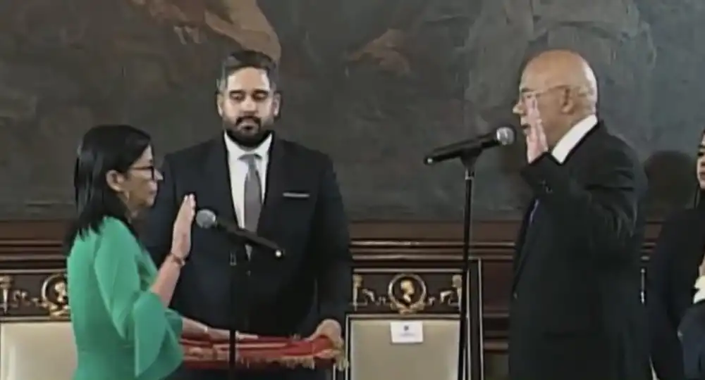 डेल्सी रोड्रिगेजलाई उनका भाइ, राष्ट्रिय सभाका नेता जर्ज रोड्रिगेजले शपथ ग्रहण गराएका थिए । शपथ ग्रहणको क्रममा उनले भनिन्- ‘मेरो देशमा अवैध सैन्य आक्रमणपछि भेनेजुएलाका जनताले भोगेको अत्याचारप्रति म शोक गर्छु । दुई नायकहरूको अपहरणमा पनि म शोक गर्छु ।’
