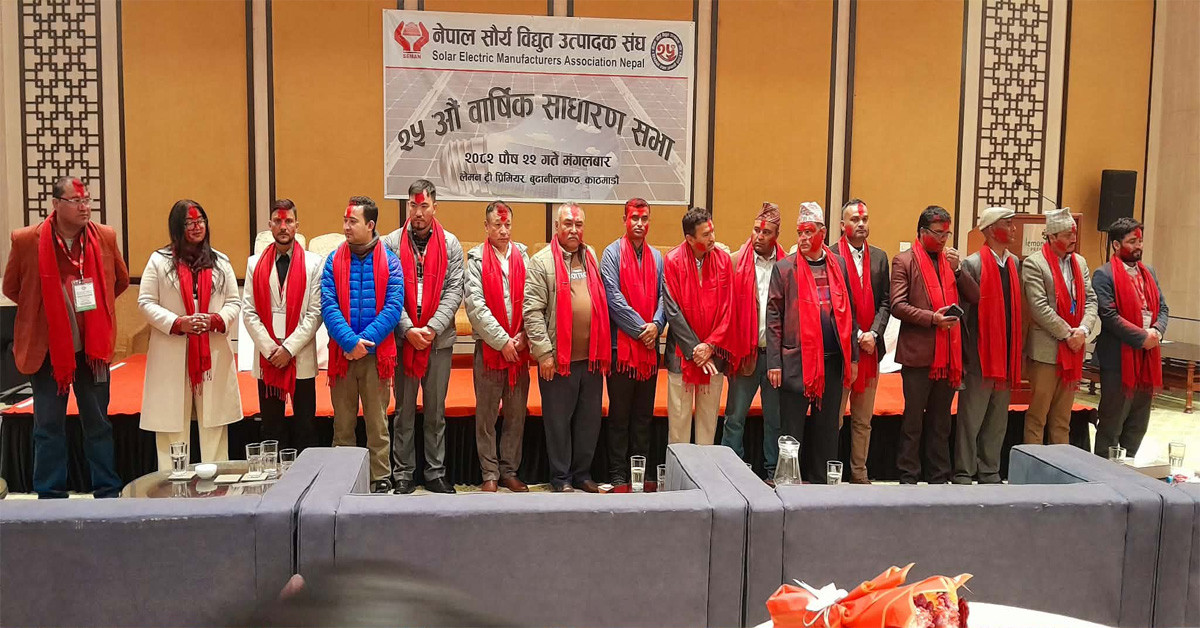 सौर्य ऊर्जा उत्पादनमा क्रियाशील संस्थालाई सङ्गठित गर्ने उद्देश्यले निजी क्षेत्रको प्रयासमा २०५७ साउन २० गते नेपाल सौर्य विद्युत् उत्पादक सङ्घ स्थापना भएको थियो । सङ्घमा हालसम्म १३८ उद्योग तथा कम्पनी आबद्ध छन् । सङ्घले यस वर्ष विविध कार्यक्रम गरी रजत जयन्ती मनाउँदै छ ।