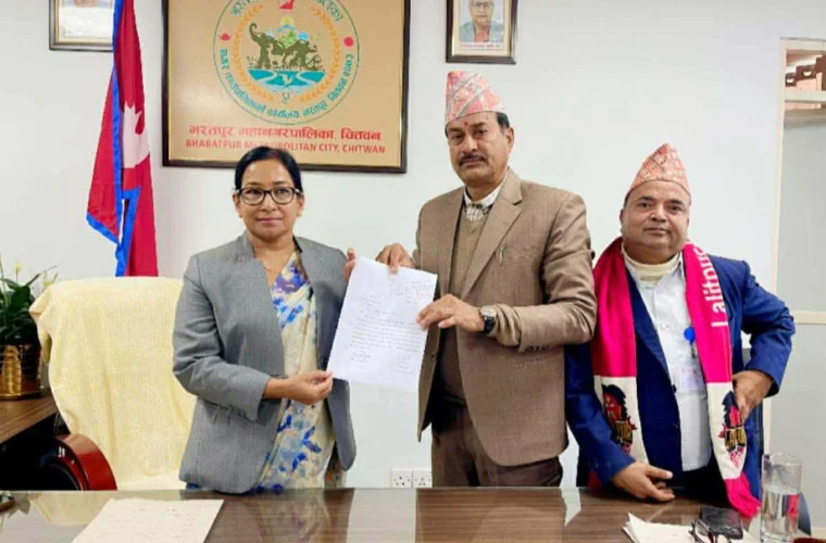भरतपुर । चितवनको भरतपुर महानगरपालिकाकी मेयर रेनु दाहालले आफ्नो पदबाट राजीनामा दिएकी छन् । लगातार २ कार्यकाल महानगरको मेयर भएकी दाहालले मंगलबार बिहान उपप्रमुख चित्रसेन अधिकारीलाई सम्बोधन गर्दै राजीनामा दिएकी हुन् ।