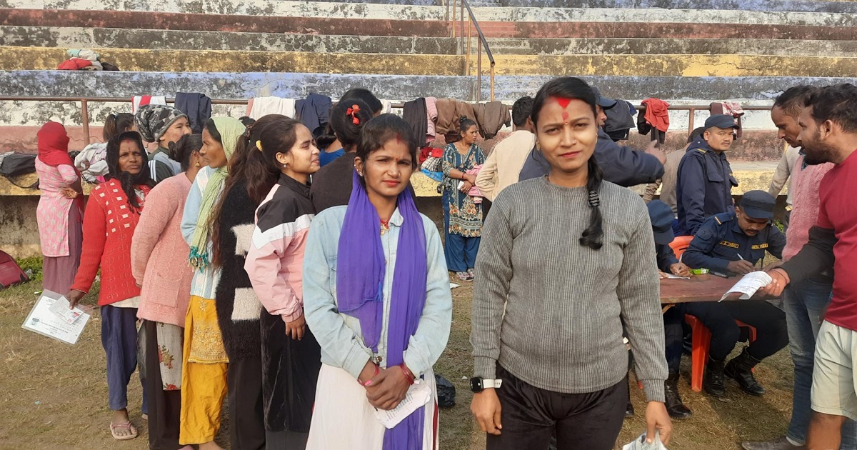 वीरगञ्जको नारायणी रङ्शालाको मैदानमा विनिन र तेतरीदेवी मात्रै नभएर पर्साको बहुदरमाई नगरपालिका–९ मा बसोबास गर्ने दुई छोराकी आमा चन्द्रमादेवी पनि निर्वाचन प्रहरी बन्ने सपना बोकेर वीरगञ्जको नारायणी रङ्गशालामा उत्रिएकी छन् ।