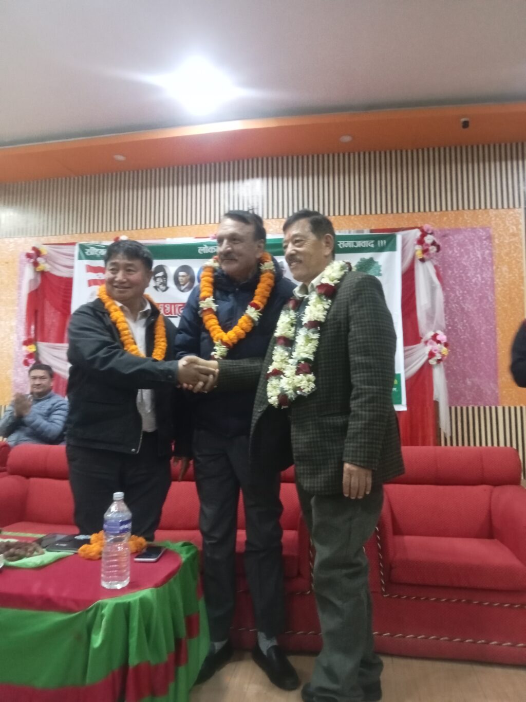 कार्यक्रममा नेपाली कांग्रेसबाट नुवाकोटका प्रतिनिधिसभा उम्मेदवार डा. प्रकाशशरण महत, जगदीश्वरनरसिंह केसी तथा केन्द्रीय सहमहामन्त्री बहादुरसिंह लामा एउटै मञ्चमा उपस्थित भई एक–आपसमा हात मिलाउँदै पार्टी एकताप्रति प्रतिबद्धता व्यक्त गरे ।