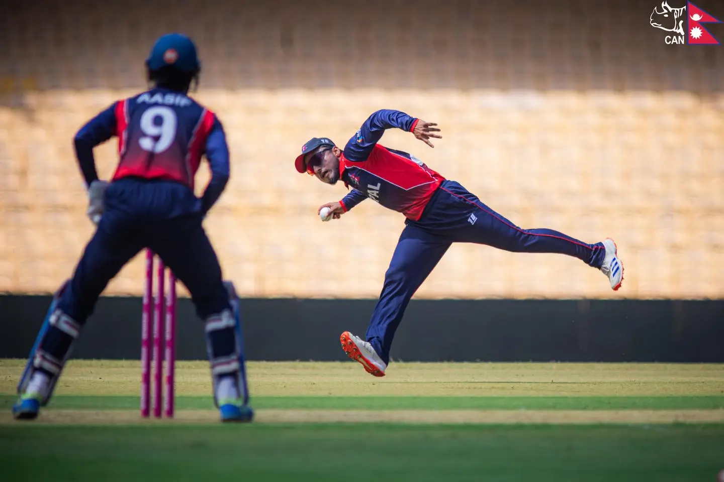 बलिङतर्फ नेपालका सन्दीप लामिछाने र कुशल भुर्तेलले दुई/दुई विकेट लिए । सोमपाल कामी र नन्दन यादवले पनि एक/एक विकेट लिए ।