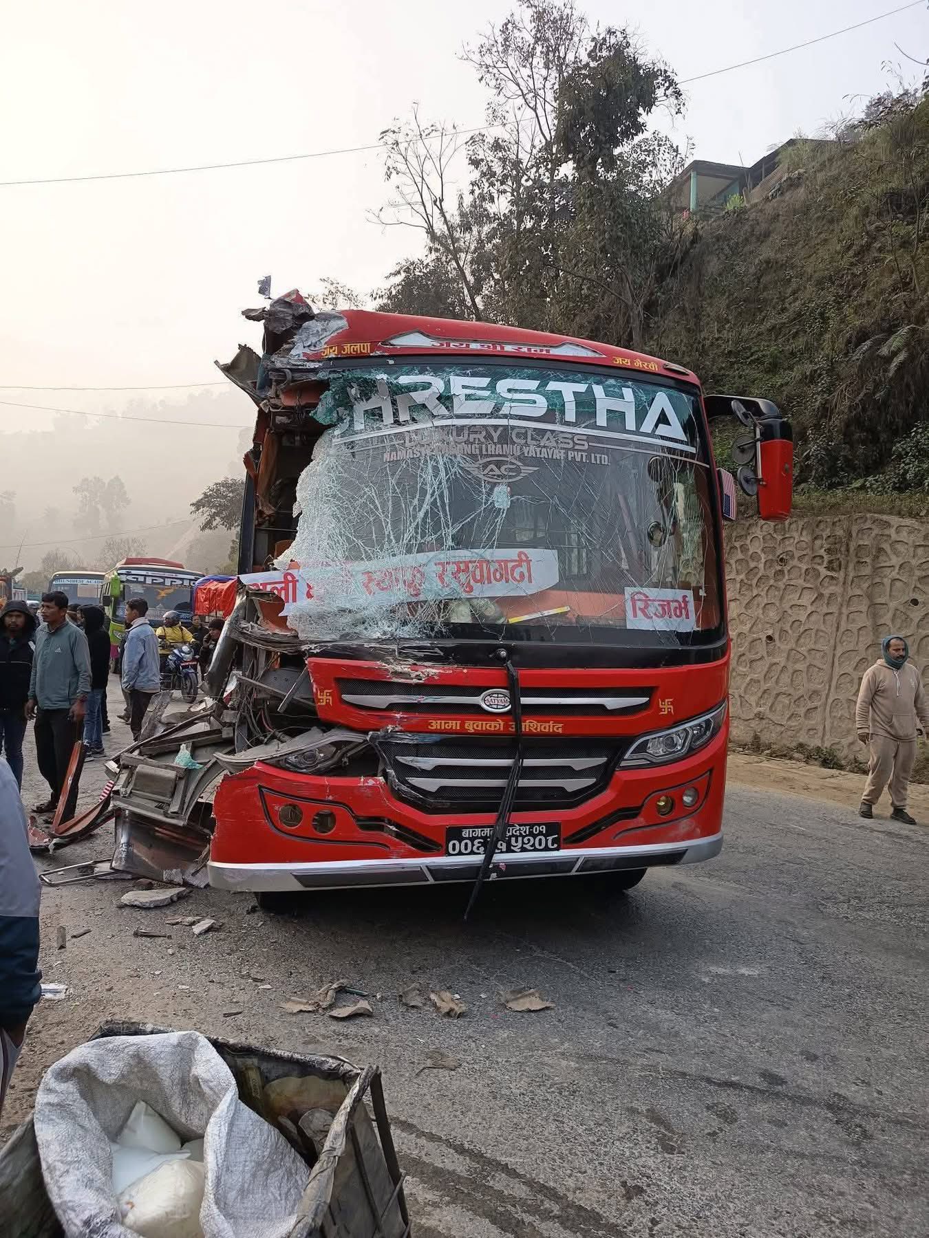 मलेखु (धादिङ। थाक्रे गाउँपालिकास्थित महादेवबेँसी नजिकै दुईवटा यात्रुवाहक बस एकआपसमा ठोक्किएर दुर्घटना भएको छ । काठमाडौँबाट रसुवाका लागि छुटेको बागमती प्रदेश०१००६ख ५२०८ नम्बरको बस र दाङबाट काठमाडौँ जाँदै गरेको प्रदेश३–०१००६ख १५५२ नम्बरको बस आज बिहान ठोक्किएका थिए ।