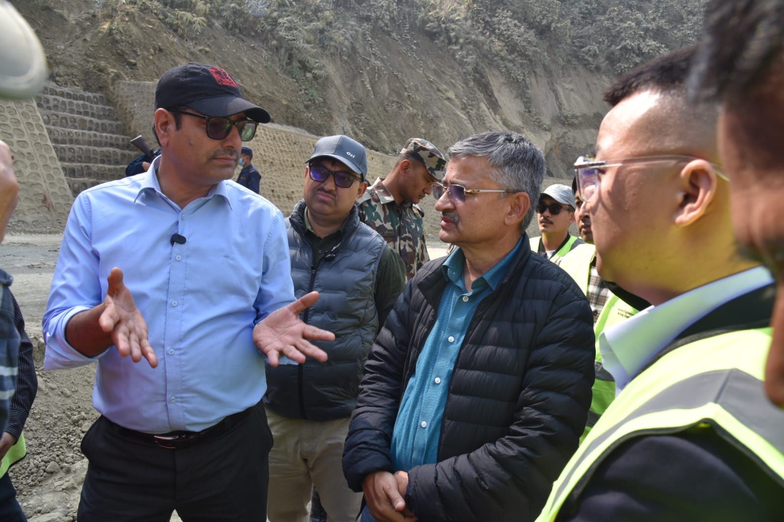 निरीक्षणका क्रममा उनले चिनियाँ ठेकेदार, कोरियन कन्सल्ट्यान्ट, साइट म्यानेजर तथा इन्जिनियरहरूसँग छलफल गर्दै आवश्यक सहजीकरण र प्रगति अनुगमनलाई प्रभावकारी बनाइने बताए ।