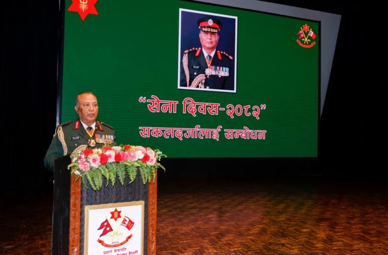 महाशिवरात्रि तथा २६२औँ सेना दिवसका अवसरमा शनिबार सैनिक मुख्यालयमा आयोजित विशेष कार्यक्रममा नेपाली सेनाका सकल दर्तालाई शुभकामनासहित सम्बोधन गर्दै उनले नेपाली सेनाले विभिन्न क्षेत्रहरुमा निर्वाह गर्दै आइरहेको जिम्मेवारीलाई उत्कृष्ट ढंगले पूरा गर्ने क्रममा निर्वाचनलाई शान्तिपूर्ण रुपमा सम्पन्न गराउन समेत विशेष निर्देशन दिए ।