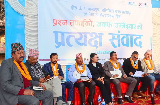 काठमाडौं । बागलुङ–१ का प्रतिनिधिसभा उम्मेदवारहरूले एउटै मञ्चबाट आ–आफ्ना चुनावी एजेन्डा सार्वजनिक गरेका छन्। बागलुङ बजारस्थित ऐश्वर्य पार्कमा आयोजित ‘प्रत्यक्ष संवाद’ कार्यक्रममा आठ जना उम्मेदवार सहभागी भई जिल्लाको विकास, रोजगारी र सुशासनका विषयमा धारणा राखेका हुन्।