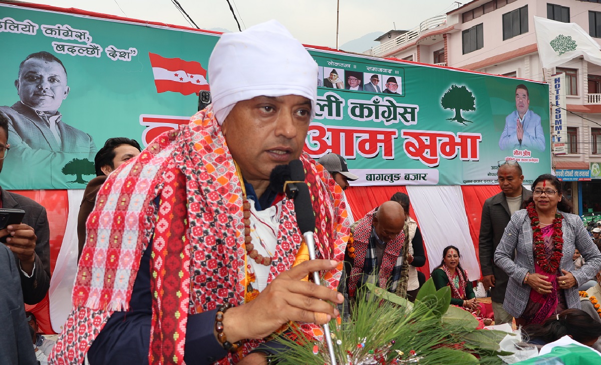 बागलुङ बजारमा आयोजित चुनावीसभालाई सम्बोधन गर्दै उनले सामाजिक सञ्जालको तागतमा नभएर पार्टी आफ्नै सङ्गठनको तागतमा उभिएकाले जनताको घर–घरमा पुगेर आफ्ना कुरा राख्न र भोट माग्न आह्वान गरे ।