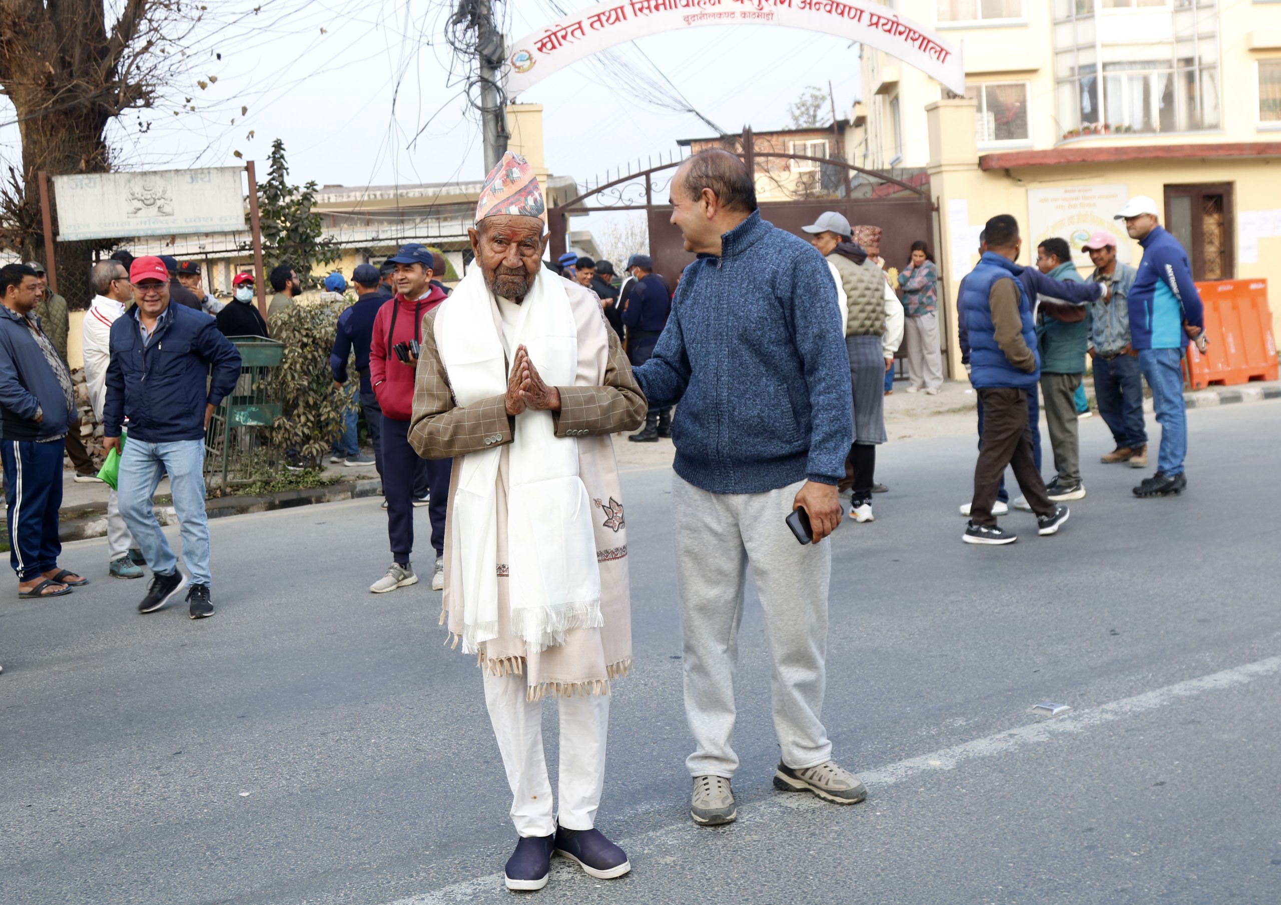 मतदान केन्द्रमा लामबद्ध मतदाताहरूले उहाँप्रति सम्मान प्रकट गर्दै धेरैले उहाँसँग फोटो खिचेर मतदानको क्षणलाई स्मरणीय बनाएका थिए ।