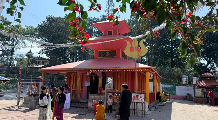 समुद्री सतहबाट करिब तीन हजार ३०० फिट उचाइमा रहेको मन्दिर पुग्न दाउन्ने बजारबाट करिब आधा घण्टा उकालो यात्रा गर्नुपर्छ । यहाँ पूजाआराधना गर्दा मनोकामना पूरा हुने विश्वासका कारण देशका विभिन्न जिल्लाबाट भक्तजन आउने गरेका छन् । भारतीय सीमा क्षेत्र नजिक पर्ने धार्मिकस्थल भएका कारण भारतबाट पनि भक्तजन यहाँ आउने गर्दछन् ।