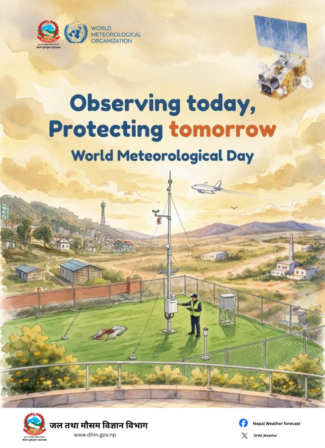 काठमाडौं । ‘आजको अवलोकन, भोलिको सुरक्षा’ भन्ने नाराका साथ नेपालमा पनि बिबिध कार्यक्रम आयोजना गरी विश्व जल तथा मौसम दिवस मनाइँदै छ । सन् १९५० मा विश्व मौसम विज्ञान सङ्गठनको स्थापना भएको दिनको सम्झनामा सन् १९६१ देखि यो दिवस मनाउन थालिएको हो ।