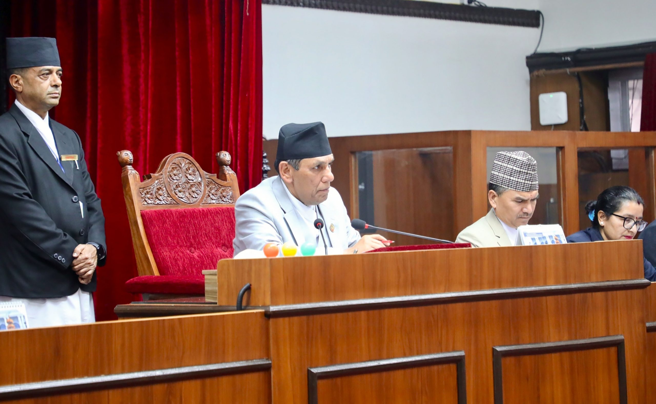 राष्ट्रिय सभामा हाल नेपाली काँग्रेसका २४, नेकपाका १७, एमालेका १०, जसपाका २ तथा लोसपा र जनमोर्चाका एक एक सांसद छन् ।त्यस्तै दुई जना मनोनित सांसद रहेका छन् ।