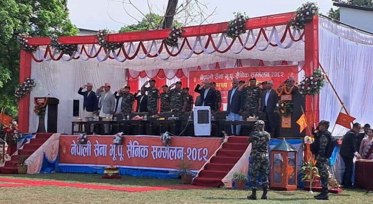 नेपाली सेनाद्वारा मध्य पश्चिम मुख्यालय बुटवलमा आयोजित भूतपूर्व सैनिक सम्मेलनको आज उद्घाटन गर्दै प्रधानसेनापति सिग्देलले देशको सार्वभौमिकताको रक्षाका लागि सेनाले निर्वाह गरेको भूमिकालगायत आन्तरिक सुरक्षा, विकास निर्माण, विपत् व्यवस्थापन तथा अन्तरराष्ट्रिय शान्ति स्थापनाले नेपाली सेनालाई स्वदेश र विदेशमा एक विश्वसनीय एवं सम्मानित संस्थाका रूपमा स्थापित गरेको बताए ।
