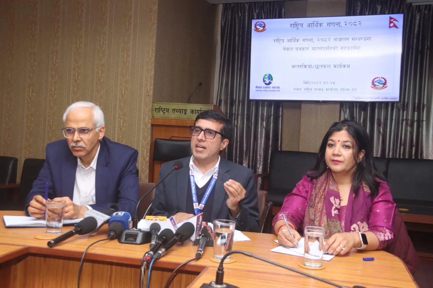 राष्ट्रिय तथ्याङ्क कार्यालयको आयोजना तथा नेपाल पत्रकार महासङ्घसँगको सहकार्यमा बुधबार काठमाडौँमा आयोजित कार्यक्रममा उपप्रमुख तथ्याङ्क अधिकारी एवं प्रवक्ता ढुण्डिराज लामिछानेले देशभर रहेका ८४ कार्यालयबाट एकैसाथ तालिम सञ्चालन गरिने जानकारी दिनुभयो ।