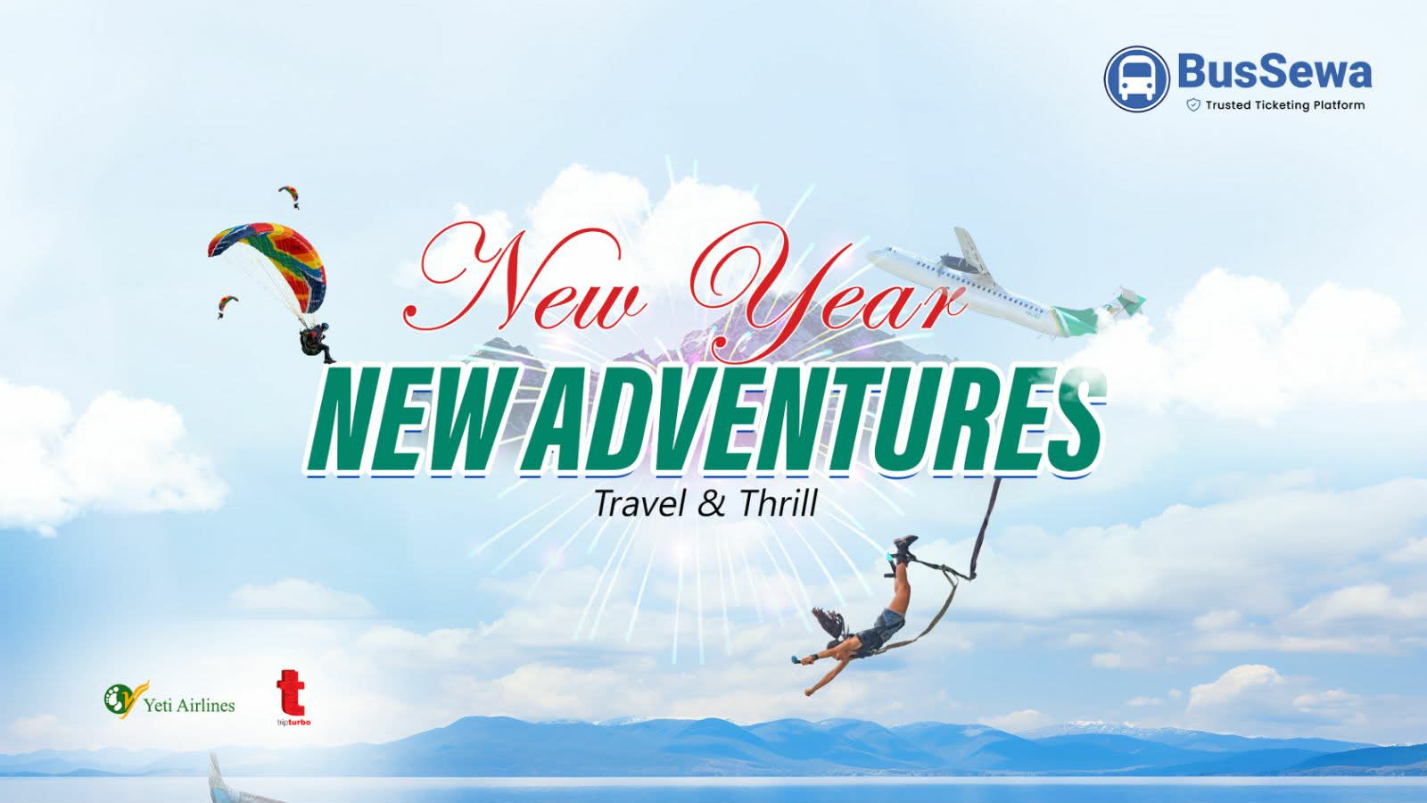 बस सेवाले सार्वजनिक गरेको ‘न्यू इयर, न्यू एड्भेन्चर’ क्याम्पेन २९ चैतदेखि १५ बैशाखसम्म जारी रहनेछ । यसअवधिका बस सेवा अनलाइन प्लेटफर्ममार्फत बस तथा हवाई उडानको टिकट काट्नेमध्ये एकजनाले ‘माउन्टेन फ्लाइट’को अवसर पाउने छन् । बस सेवाले यति यएरलाइन्ससँगको सहकार्यमा आफ्ना ग्राहकलाई यो अवसर उपलब्ध गराएको हो ।