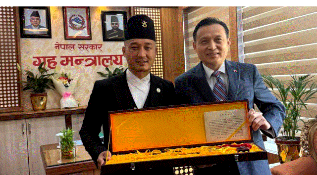 काठमाडौं । नेपाल–चीन द्विपक्षीय सम्बन्धलाई थप मजबुत बनाउने विषयमा गृहमन्त्री सुधन गुरुङ र नेपालका लागि चिनियाँ राजदूत चाड माओमिङबीच भेटवार्ता भएको छ। भेटमा दुवै पक्षले आपसी सहयोग, सुरक्षा र विकासका एजेन्डामा सहकार्य विस्तार गर्ने प्रतिबद्धता जनाएका छन्।