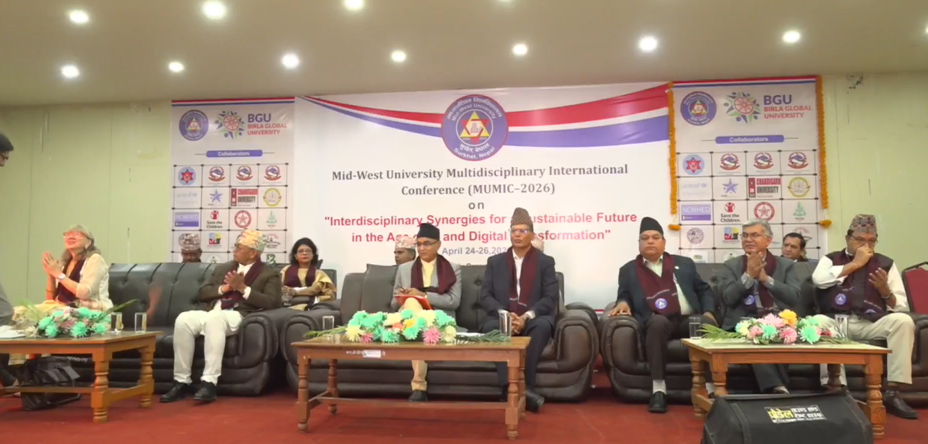 कर्णाली।कर्णाली प्रदेशको राजधानी सुर्खेत वीरेन्द्रनगरस्थत मध्यपश्चिम विश्वविद्यालयमा ‘बहुविषयगत अन्तर्राष्ट्रिय सम्मेलन–२०२६’ उद्घाटन भएको छ ।