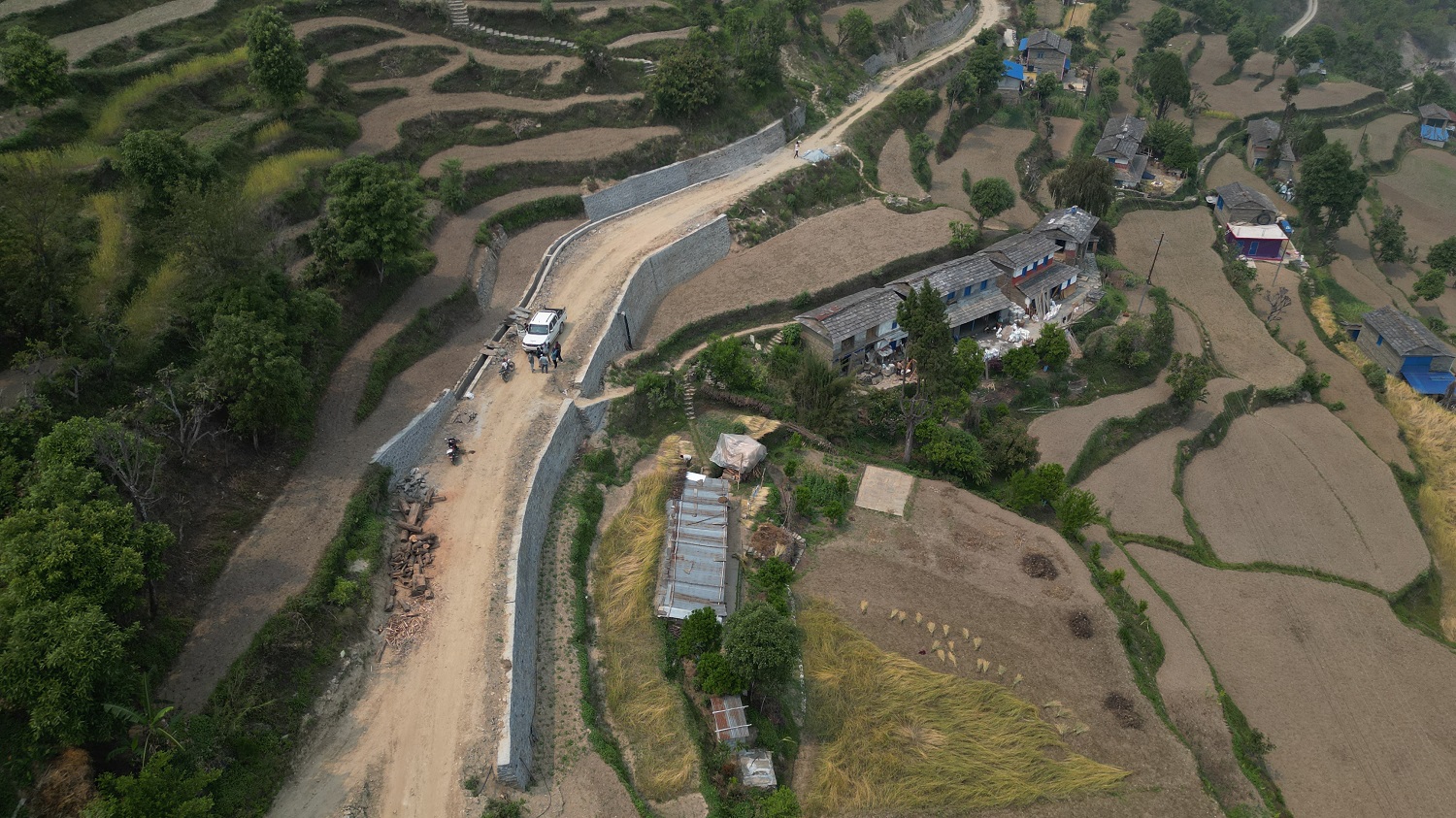 उपल्लो तुसारेपानी र कुहुँकोबीचमा रहेको डाडाँको घुम्तीमा १२८ घनमिटर ग्यावियन पर्खाल लगाएर सडक फराकिलो पारिएको पूर्वाधार विकास कार्यालयका सवइञ्जिनियर रविन चोखालले बताउनुभयो ।