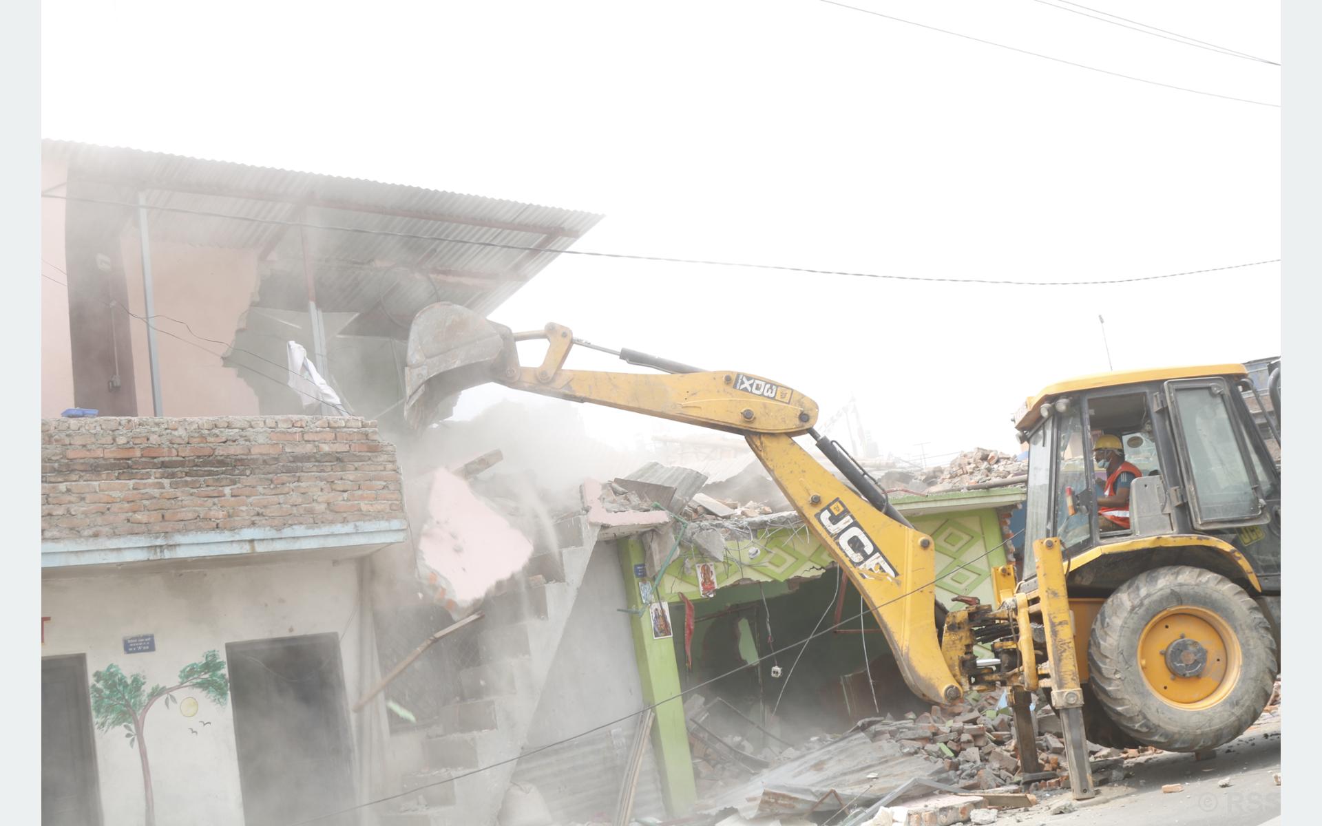 काठमाडौँ । काठमाडौँ महानगरपालिका–९ अन्तर्गत गैरीगाउँ–सिनामङ्गल क्षेत्रमा अतिक्रमण गरी निर्माण गरिएका घरटहरा हटाउने कार्यलाई निरन्तरता दिइएको छ । शनिबार अबेर रातिसम्म जारी घरटहरा भत्काउने कार्य आज पुनः सुरु गरिएको हो ।