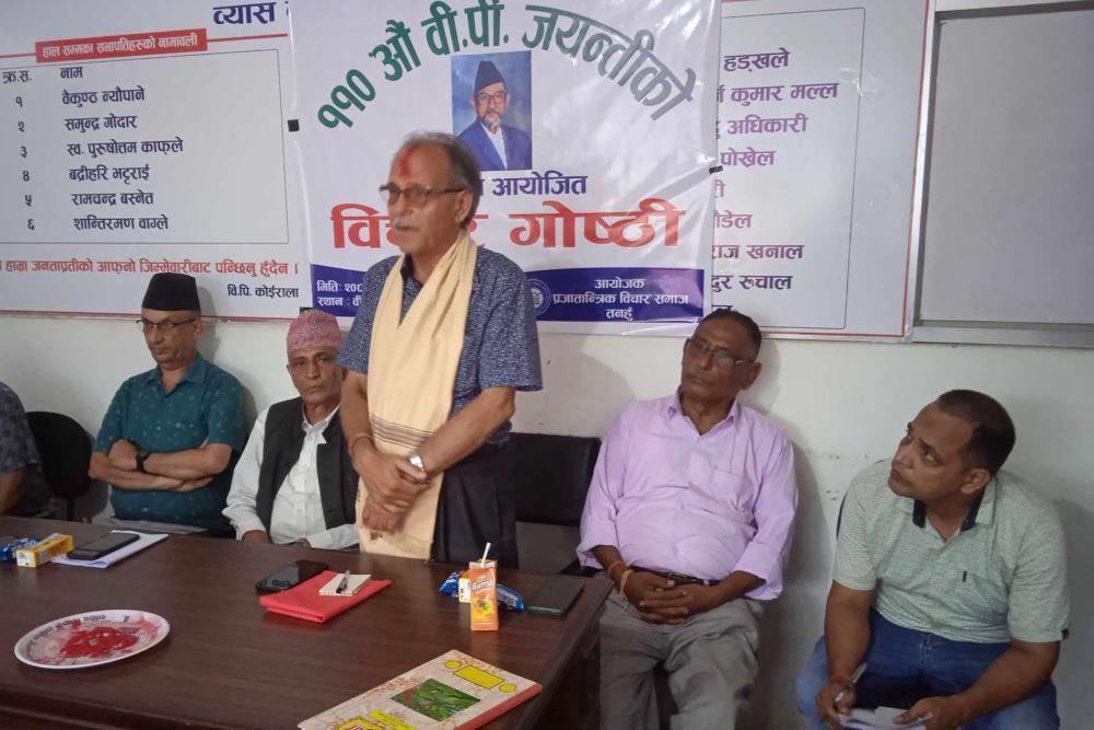 ११०औं बीपी जयन्तीको अवसरमा प्रजातान्त्रिक विचार समाज तनहुँले शनिबार दमौलीमा आयोजना गरेको विचार गोष्ठीलाई सम्बोधन गर्दै उनले बीपी कोइरालाले देखाएको बाटोमा हिँड्नुपर्ने बताए ।