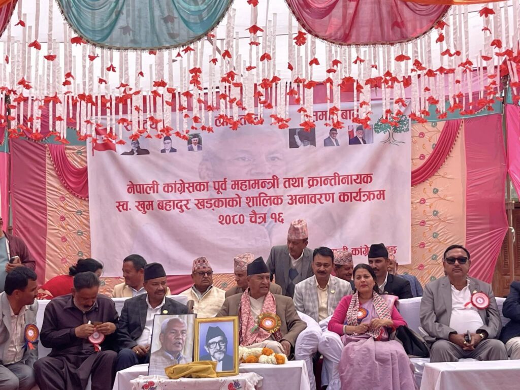 काठमाडौं । पूर्वप्रधानमन्त्री एवम नेपाली कांग्रेसका सभापति देउवाले कांग्रेसका पूर्वमहामन्त्री एवम पूर्वगृहमन्त्री समेत रहका स्वर्गीय खुमबहादुर खडकाको शालिक अनावरण गरेका छन् । केन्द्रमा सत्ता समिकरण परिवर्तनपछि पहिलो पटक उपत्यका बाहिर गएका सभापति देउवाले आज स्वर्गीय खडकाको दाङको अमिलियामा निर्माण गरिएको शालिकको अनावरण गरेका हुन् ।