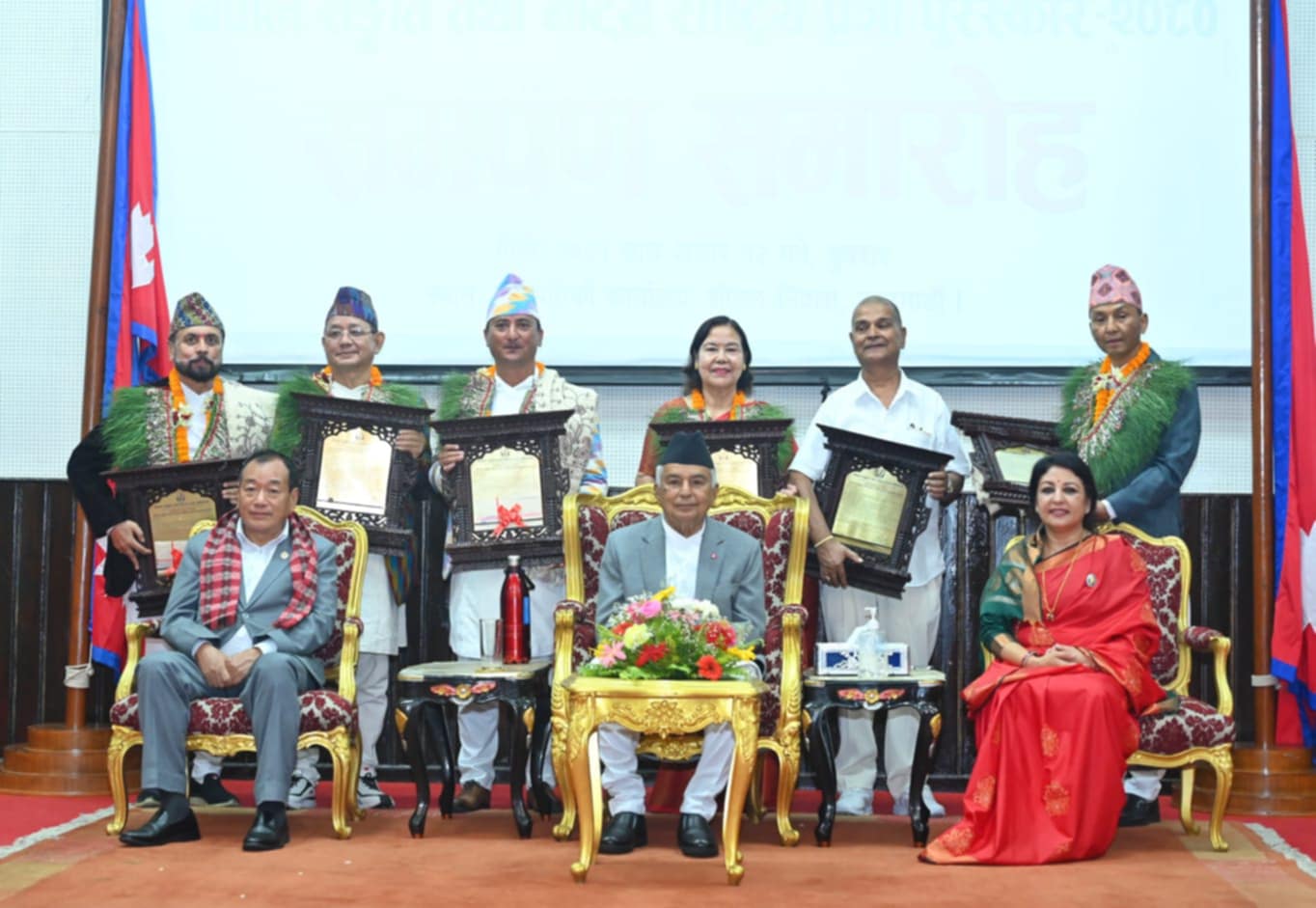 नेपाल सङ्गीत तथा नाट्य प्रज्ञा प्रतिष्ठानद्वारा शीतल निवासमा आज आयोजित ‘नेपाल सङ्गीत तथा नाट्य राष्ट्रिय प्रज्ञा पुरस्कार–२०८० वितरण’ समारोहलाई सम्बोधन गर्दै राष्ट्रपति पौडेलले कला संस्कृतिसहितको पहिचान नै भावी पुस्ताको महत्वपूर्ण सम्पत्ति भएको बताए ।