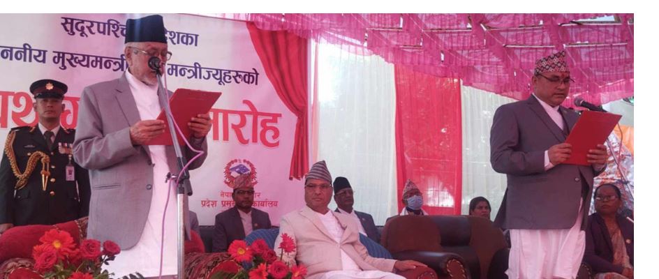 काठमाडौं । सुदूरपश्चिम प्रदेशका नवनियुक्त मुख्यमन्त्री कमलबहादुर शाह पद तथा गोपनियताको शपथ लिएका छन्।