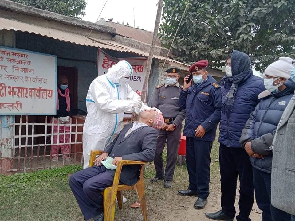 सप्तरीका प्रमुख जिल्ला अधिकारी जनार्दन गौतम र जिल्ला स्वास्थ्य कार्यालयका निमित्त प्रमुख दुनियालाल यादव आफ्नै एन्टिजेन परीक्षण गरेर ट हेल्प डेस्क स्थापना गरेको हो।