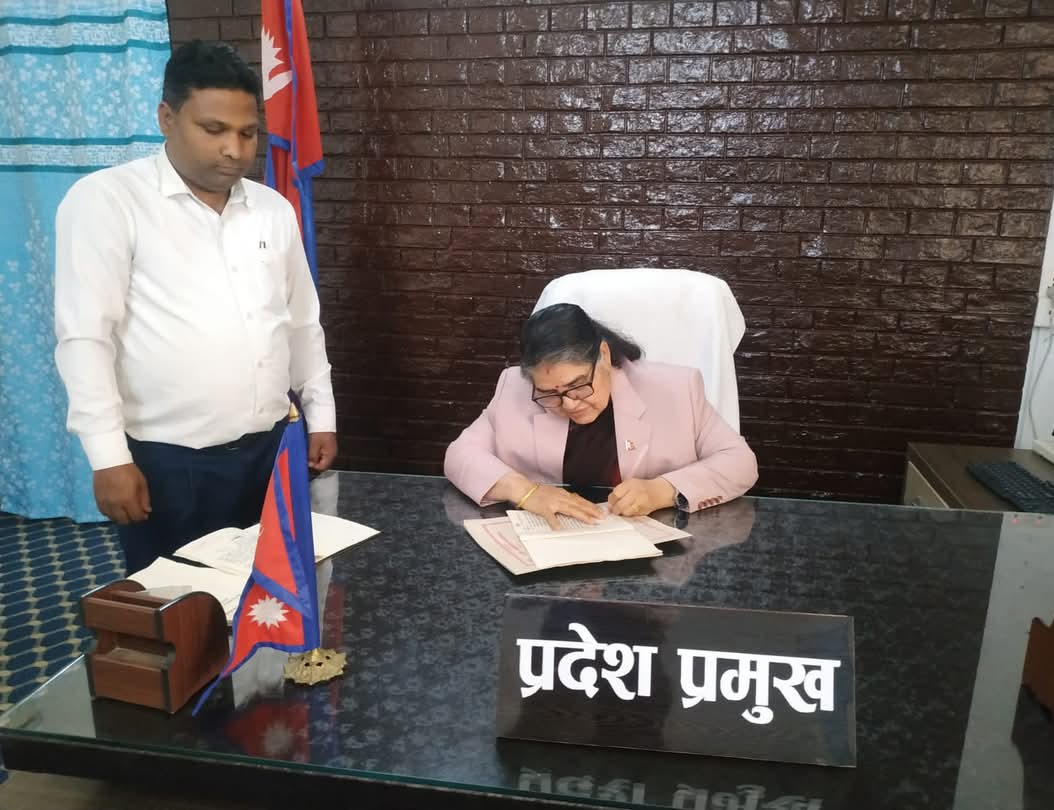महेन्द्रनगर (धनुषा)। मधेस प्रदेशका प्रमुख सुमित्रा सुवेदी भण्डारीले प्रदेशसभाबाट पारित भई प्रमाणीकरणका लागि पेस गरिएका तीन महत्वपूर्ण विधेयक प्रमाणीकरण गरेका छन् ।
