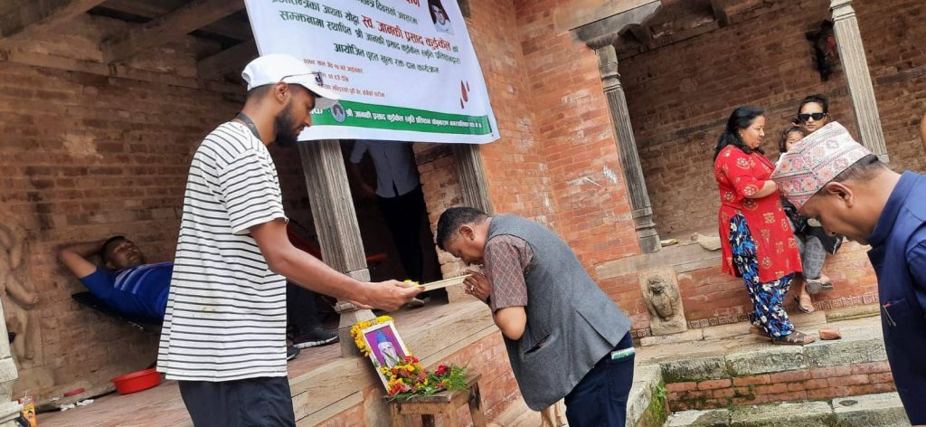 भक्तपुर । चाँगुनारायण नगरपालिकाका मेयर जीवन खत्रीले १५ औं गणतन्त्र दिवसको अवसरमा रक्तदान गरेका छन । गणतन्त्र दिवसको अवसरमा जानकी प्रसाद कुईँकेल स्मृति प्रतिष्ठानले प्रजातान्त्रिक योद्धा जानकी प्रसाद कुईँकेलको सम्झनामा रक्तदान कार्यक्रम गरेको हो ।