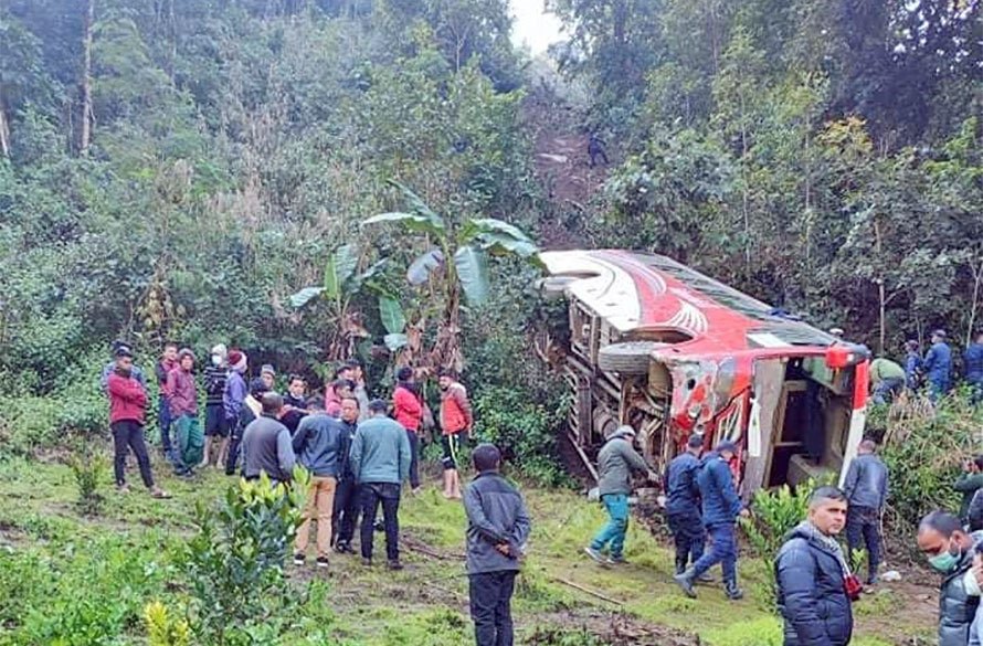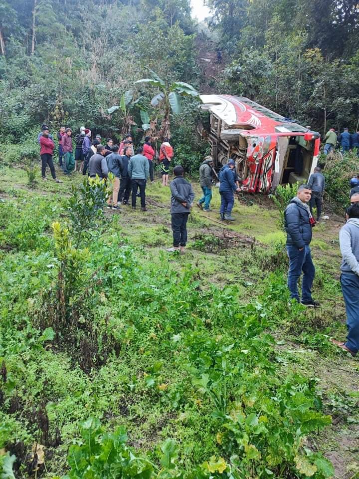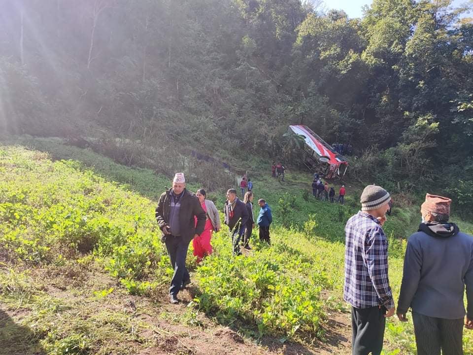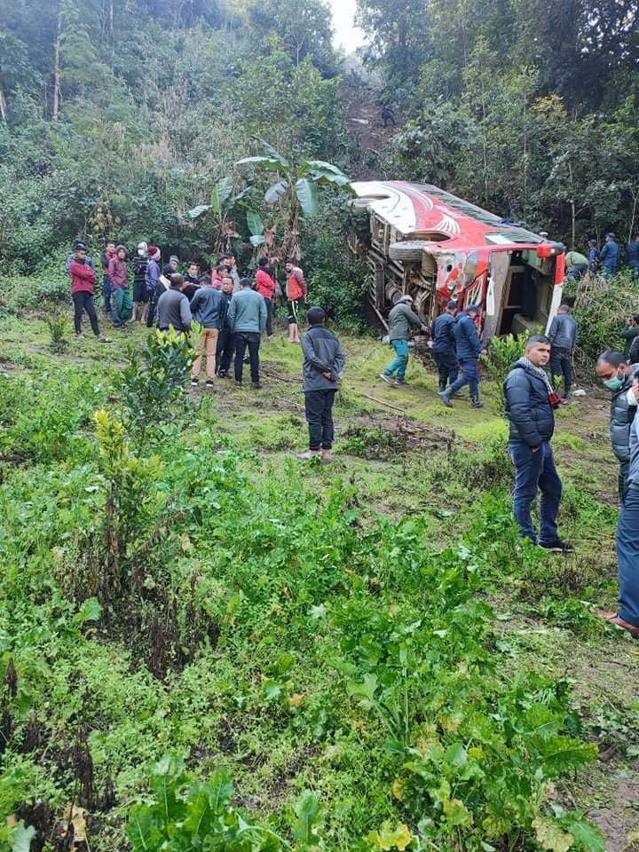 आइतबार बिहान साढे १० बजे ३५ जना मलामी सवार लु १ ख ७२७९ नम्बरको बस दुर्घटना भएको हो ।