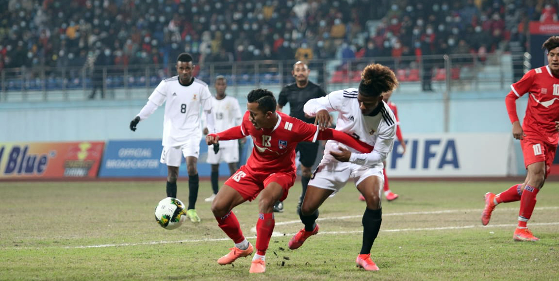 त्रिपुरेश्वरस्थित दशरथ रंगशालामा नेपाललाई जीत दिलाउन विमल घर्ति मगरकाे गाेल निर्णायक रह्याे । विमलले खेलकाे ५५औं मिनेटमा गोल गरेका हुन् । उनले १८ यार्ड क्षेत्रबाट सानदार गोल गरे । एक वर्षपछि टिममा पुनरागमन गरेका विमलले पहिलो खेलमै गोल गरेका हुन् ।