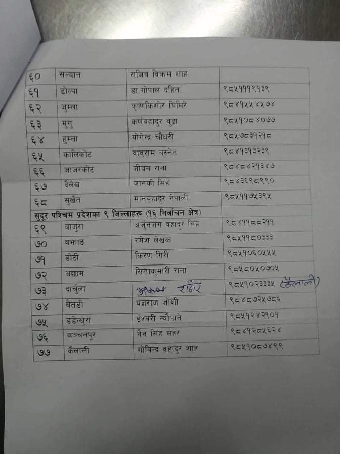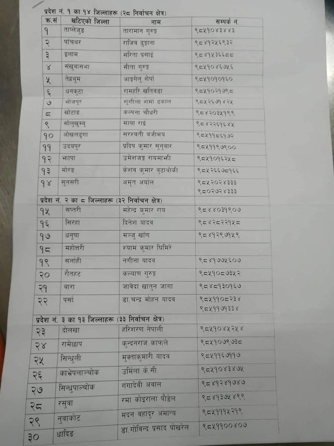 हेर्नुहाेस्, कुन जिल्लामा कुन नेतालाई जिम्मेवारी ?