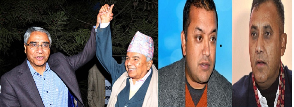 महामन्त्रीद्वय विश्वप्रकाश शर्मा र गगन थापा भने गठबन्धन गर्न नहुने पक्षमा छन् । कांग्रेस एक्लै चुनाव लड्न सक्ने भन्दै उनीहरू कुनै पनि राजनीतिक दलहरूसँग चुनावी तालमेल गर्न नहुनेमा उनीहरूको अडान हो ।