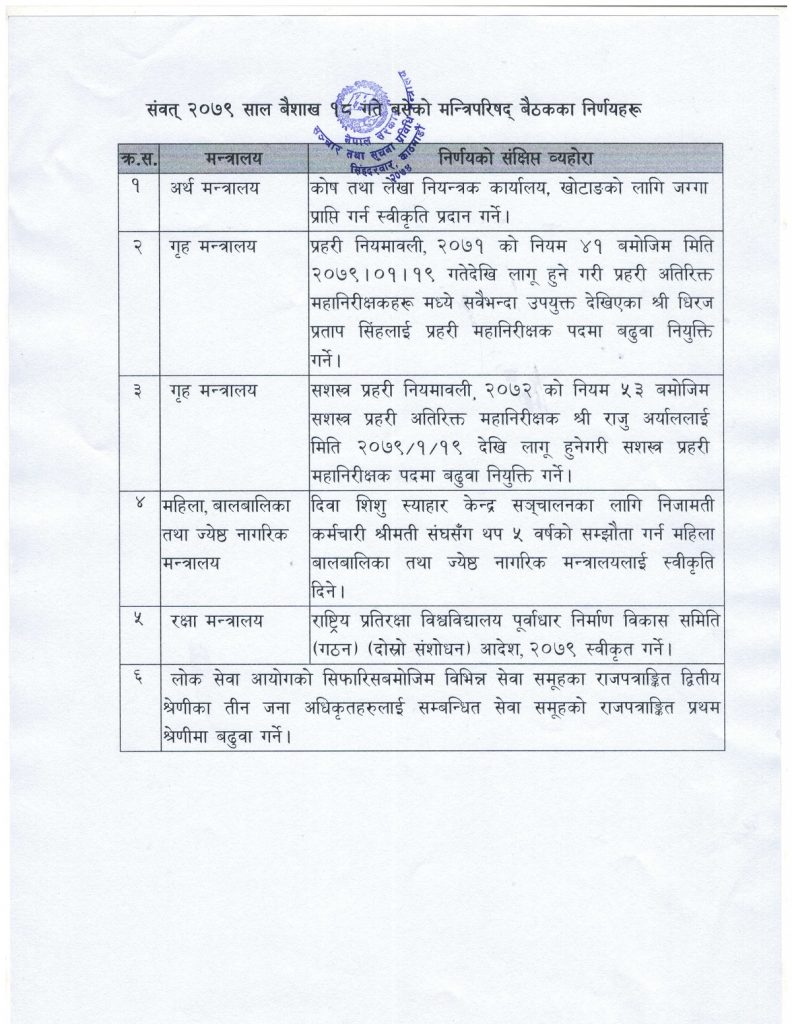 आइतबार बसेको मन्त्रिपरिषद्को बैठकले यस्तो निर्णय गरेको हो ।