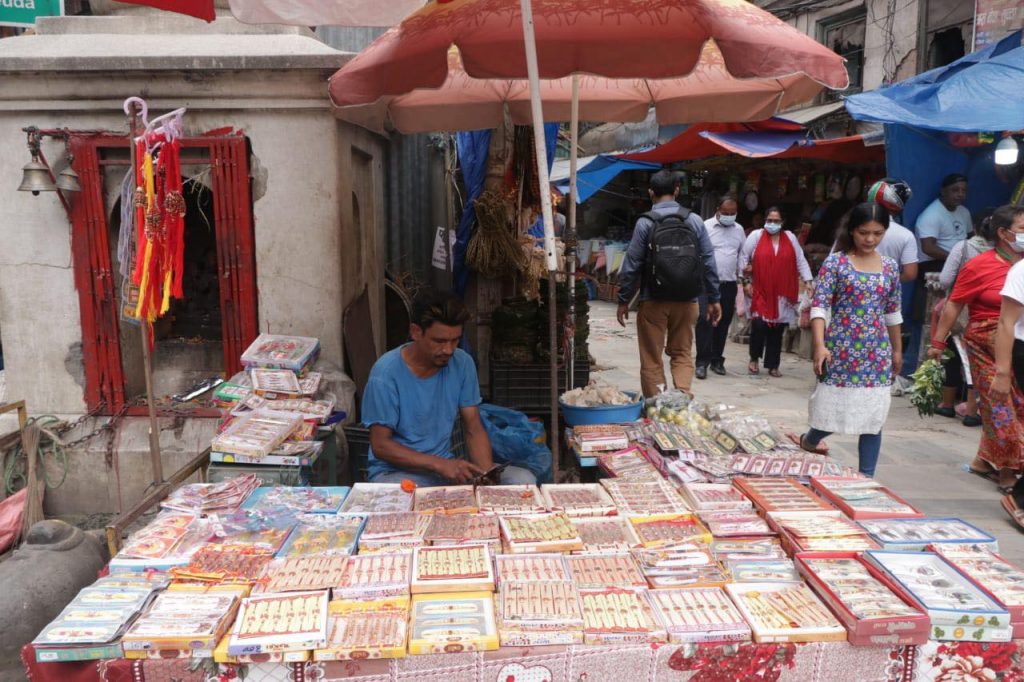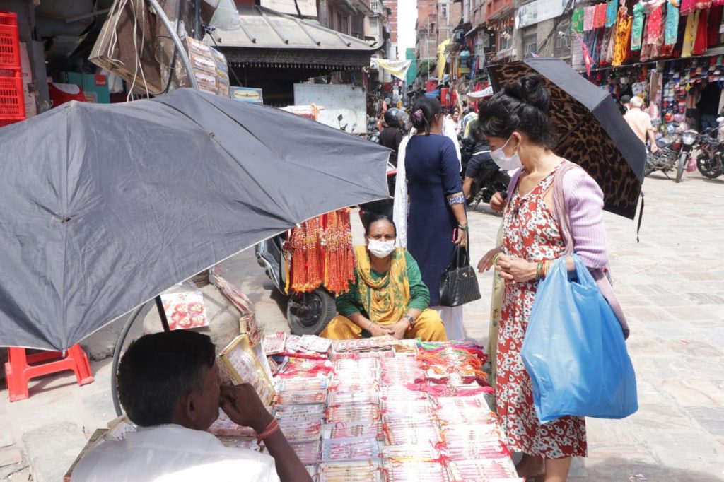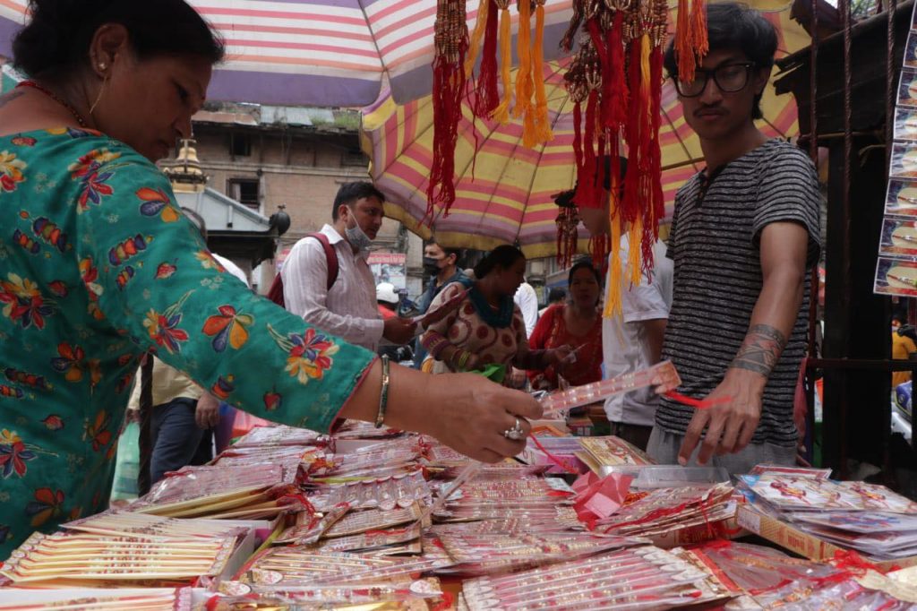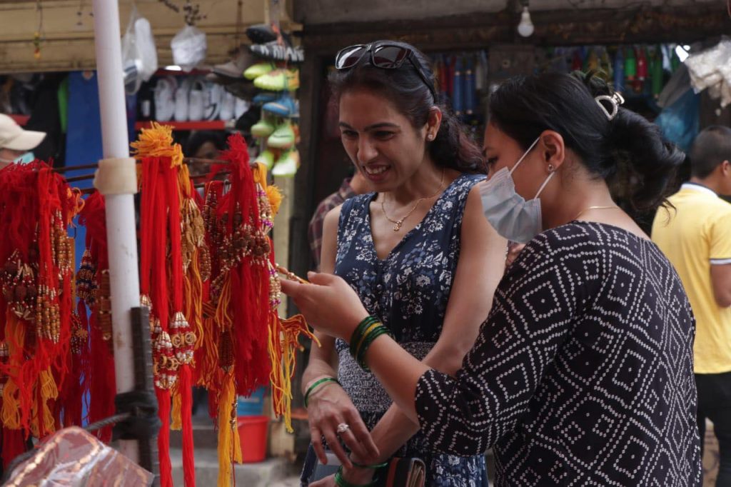 काठमाडौं । काठमाडौंका प्रमुख बजारहरूमा रक्षाबन्धनको अघिल्लो दिन बिहीबार सामान्य दिन भन्दा भिडभाड देखिएको छ । रक्षाबन्धनका लागि आवश्यक सरसामान किनमेल गर्नेहरूका कारण बजारमा भिड बढेको हो । काठमाडौंका न्यूरोड, असन, इन्द्रचोक, नयाँ बानेश्वर, चाबहिल लगायतबजारमा बिहानैदेखि विशेष चहलपहल छ ।