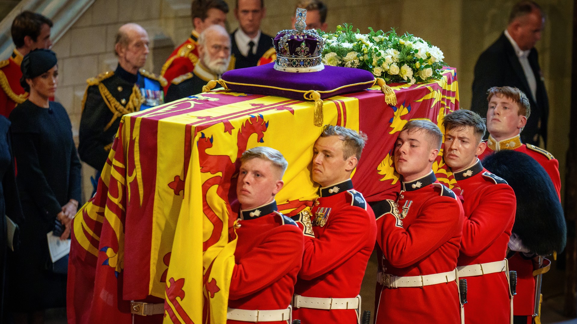 राजा चाल्र्स तृतीयले आमाको कफिन पछाडि रहेर वेस्टमिन्स्टर हलदेखि एबेसम्मको शवयात्राको नेतृत्व गर्दा उनलाई राजपरिवारका अन्य सदस्यले साथ दिएका थिए ।