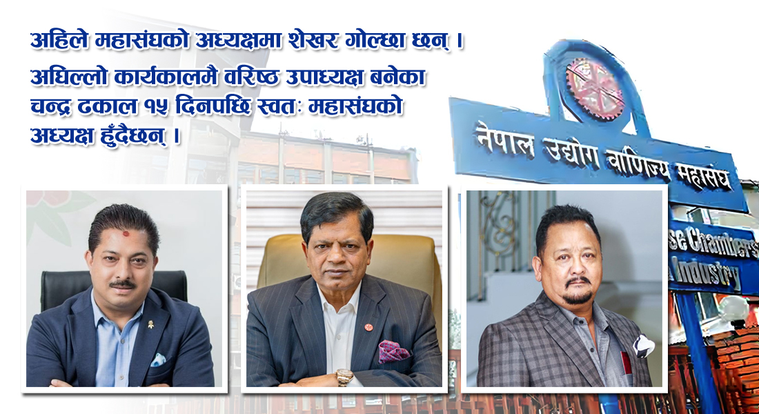 अहिले महासंघको अध्यक्षमा शेखर गोल्छा छन् । अघिल्लो कार्यकालमै वरिष्ठ उपाध्यक्ष बनेका चन्द्र ढकाल १५ दिनपछि स्वतः महासंघको अध्यक्ष हुँदैछन् । तर उनी अहिलेसम्म कसैको पक्षमा खुलेका छैनन् । यसअघि गोल्छा चुनावमा प्यानलसहित उत्रिएका थिए ।