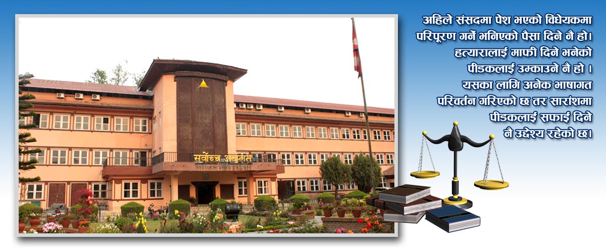 अहिले संसदमा पेश भएको विधेयकमा परिपूरण गर्ने भनिएको पैसा दिने नै हो। हत्यारालाई माफी दिने भनेको पीडकलाई उम्काउने नै हो। यसका लागि अनेक भाषागत परिवर्तन गरिएको छ तर सारांशमा पीडकलाई सफाई दिने नै उद्देश्य रहेको छ।