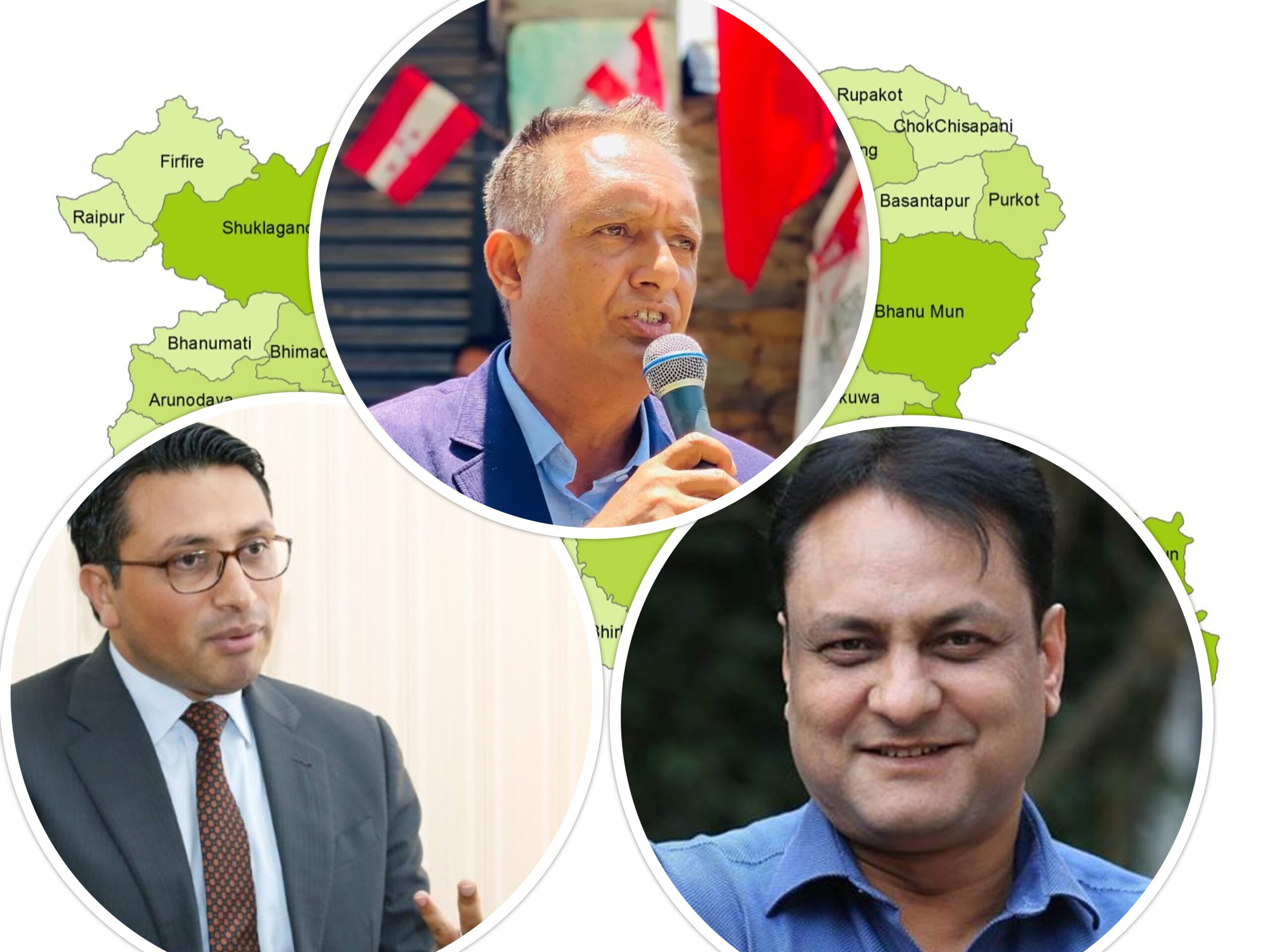 यसपटक कांग्रेसका उम्मेदवार भट्टराईलाई माओवादी, एकीकृत समाजवादी, नेपाल समाजवादी पार्टी र जसपाको समर्थन छ । एमालेबाट सर्वेन्द्र खनाल र रास्वपाबाट डा.स्वर्णिम वाग्ले उम्मेदवार छन् । खनाल मंसिरको निर्वाचनमा काठमाडौं ६ मा पराजित भएका व्यक्ति हुन् । वाग्ले भने चैत १६ गते कांग्रेस छाडेर रास्वपामा प्रवेश गरी उम्मेदवार बनेका हुन् ।