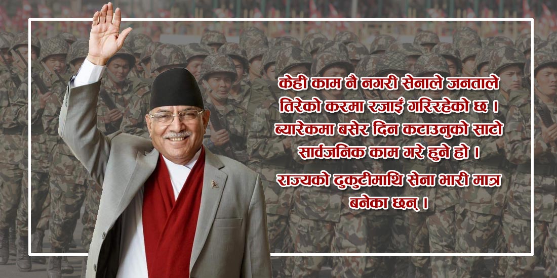 रातारात सीमाना सार्दै नेपाली भूमि कब्जा गर्ने कार्य बढेको छ । भारतले तुइन काटिदिएर नेपालीको ज्यानसमेत गएको छ । छिमेकी मुलुकहरूले सानो मुलुक भएको फाइदा उठाउँदै आफ्नो मनलाग्दी गर्दै आएका छन् । नेपाली सेना भने घाम ताप्ने, भात खाने, ब्यारेकमा फुटबल खेलेर बस्ने काम भइरहेको छ । मुलुकमा सेनाको काम छैन भन्ने कुरा जनताले राम्रोसँग बुझिसकेका छन् । पटकपटक मुलुकले विपद् खेप्यो । २०७२ सालमा महाभूकम्प गयो, तर त्यहाँ पनि सेनाको त्यति सक्रियता देखिएन् ।