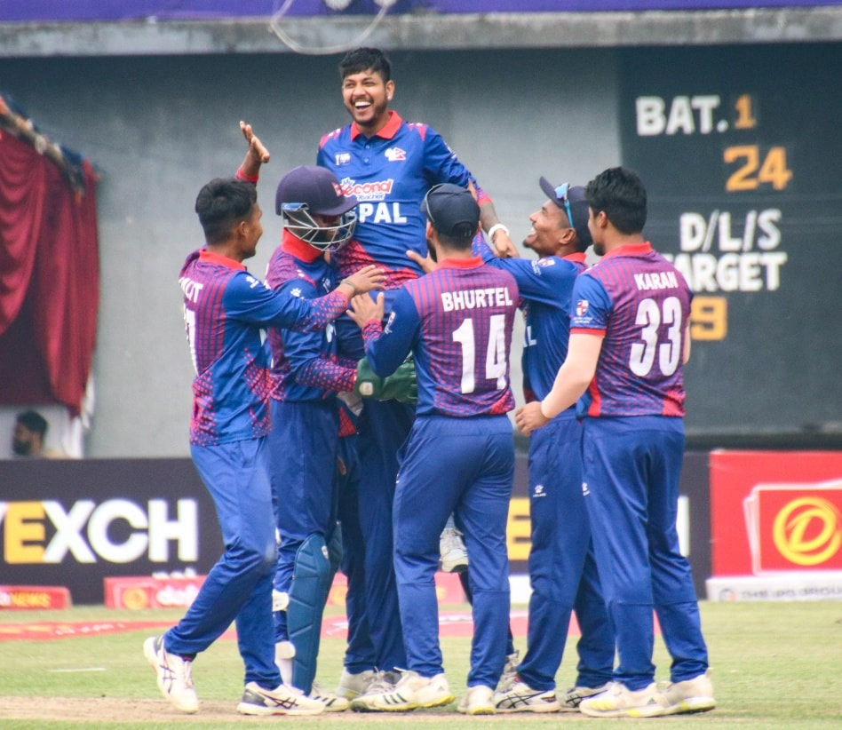नेपाललाई महत्वपूर्ण जित दिलाउन नेपाली बलर सन्दीप लामिछाने र करण केसीले ३-३ विकेट लिए भने दिपेन्द्र सिंह ऐरीले २ तथा ललित राजबंशीले एक विकेट लिए ।